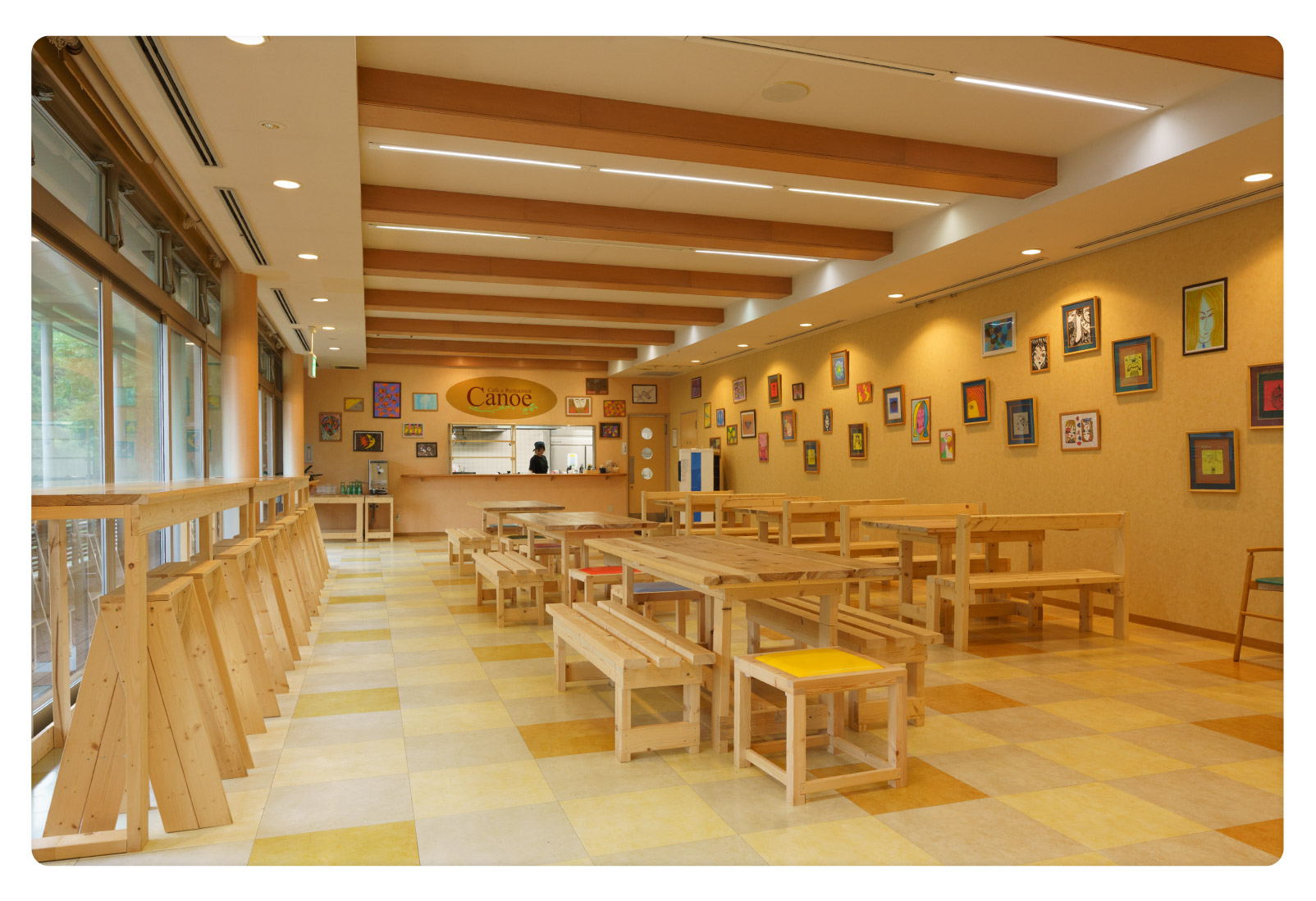 江の川カヌー公園さくぎのレストランが「Café&Restaurant Canoe」としてリニューアル。店内のテーブルやいすは木材で作られていて、ナチュラルでぬくもりのある雰囲気に包まれています。