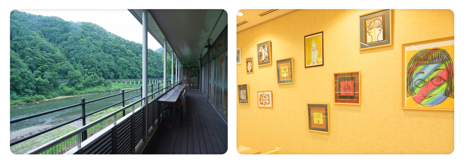 壁には、グループ企業「emport三次」利用者が描いた絵画が展示されています。