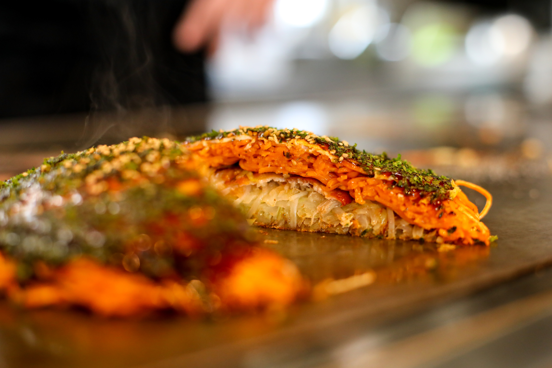 The new okonomiyaki Daichi Egusa helped create, made with karamen noodles instead of standard unflavored ones, is called “Miyoshi karamen-yaki,” and the unique dish has become immensely popular at okonomiyaki shops in the region. Hidden inside a batch of Hiroshima-style okonomiyaki and covered in Miyoshi’s favorite Carp Sauce, the presence of karamen noodles isn’t always obvious until the first bite―but the extra dash of flavor that the spicy noodles lend to okonomiyaki is enough to hook any foodie, without being so spicy as to scare away eaters who can’t take the heat. After trying karamen-yaki, it’s hard to go back to standard okonomiyaki!