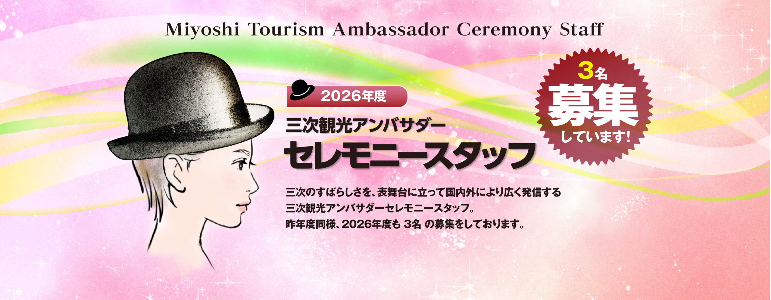 2026年度三次観光アンバサダーセレモニースタッフを募集しています。