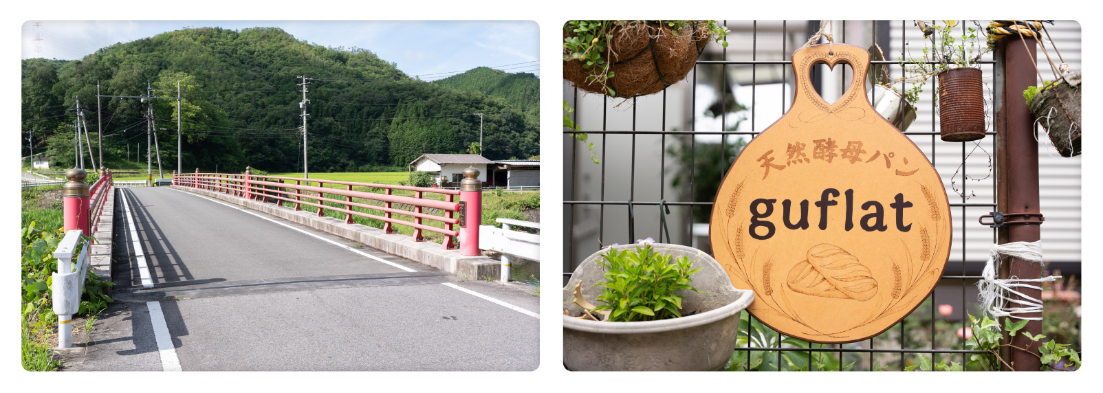 辻八幡神社の手前にある朱色の橋「宮平橋」にちなみ、宮を「gu」、平を「flat」と置き換えて命名しています。畑中さんご夫妻の仲のよさ、地域愛が感じられるエピソードです。