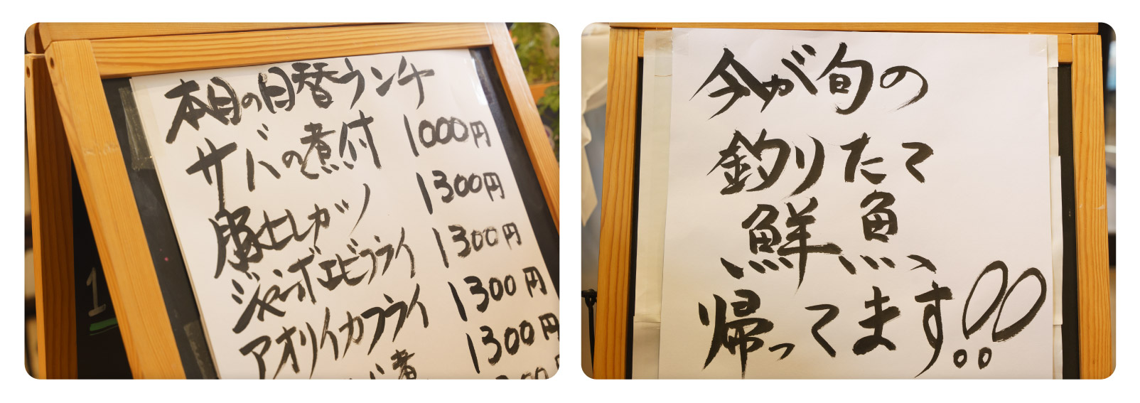 数量限定の「本日の日替ランチ」はこの日魚の煮付け。他にもフライや刺身など、魚料理がずらりと並びます。新鮮な魚料理をリーズナブルに味わえるのは三次では珍しいと、オープン以来人気を集めています(メニュー及び値段は取材時のものです)。