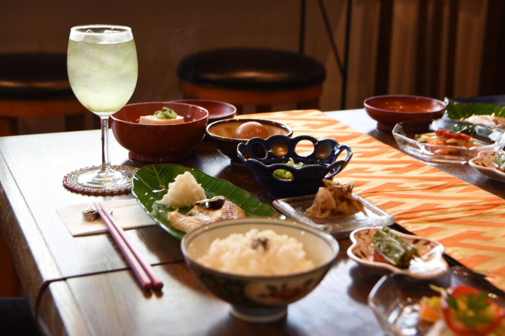 青貓的住宿方案中,有包含早餐和晚餐的選項,用餐地點就是卑彌呼藏的小餐館「万mann茶房」。宇坪小姐會採用當地的食材進行創作,提供無菜單在地手作料理,精巧美味又不失日常感,嚐起來於身於心都是療癒。上菜時,宇坪小姐也會簡單說明料理的食材和作法,在這樣的基礎上用餐,更能感受食材與料理帶來的驚喜感。